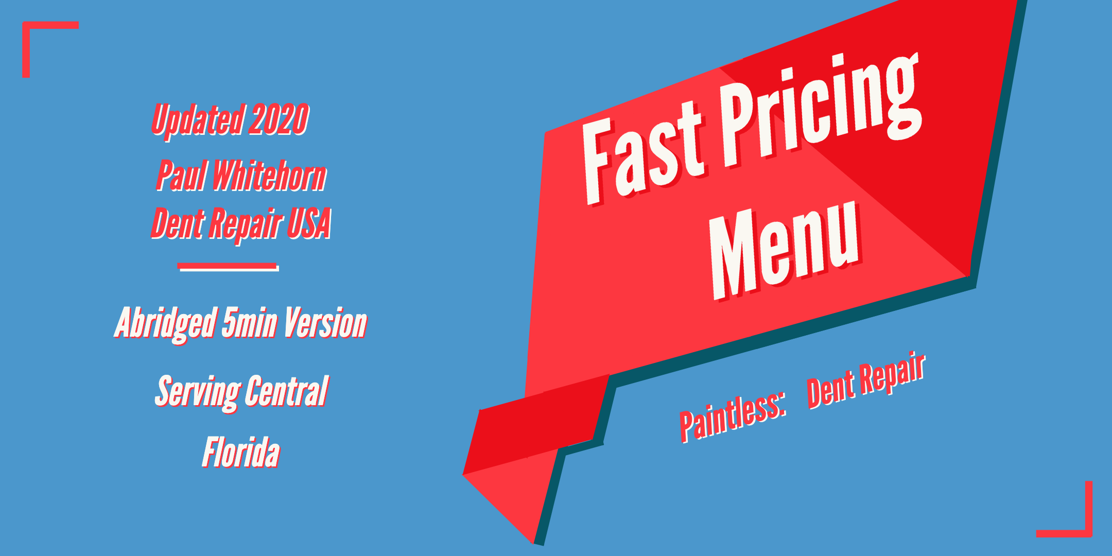 This is the abridged version of a “Paintless Dent Repair Pricing Video” that is almost eighteen minutes long. I tried to keep this version under five minutes, because I know that your time is valuable. I have a transcript of this video, but Im not sure it would be more helpful than simply looking at the pricing menu itself.